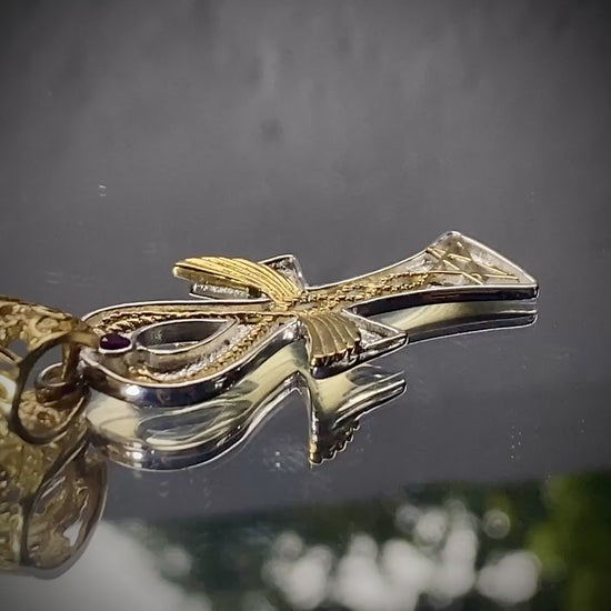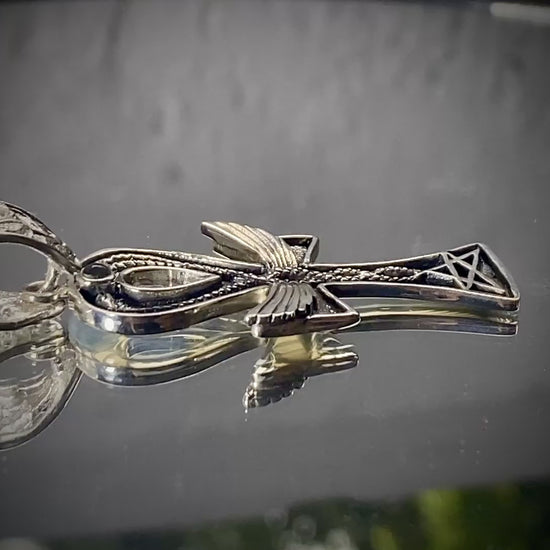 This pendant is a living glyph—an alchemical sigil forged in devotion. At its heart, the Ankh, ancient key of eternal life, opens the gateway between worlds. Rising through its spine, the Caduceus spirals upward—two serpents entwined in sacred ascent, weaving the dance of duality into unity, channeling the creative fire of transformation through the breath of immortality.